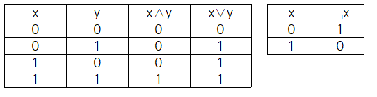 -operations : conjunction(AND), disjuction(OR), negation(NOT)