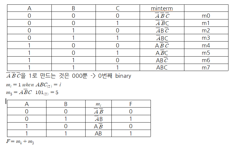 1.2^n minterms( 인풋이 n개일때 2^n개의 minterm 존재)