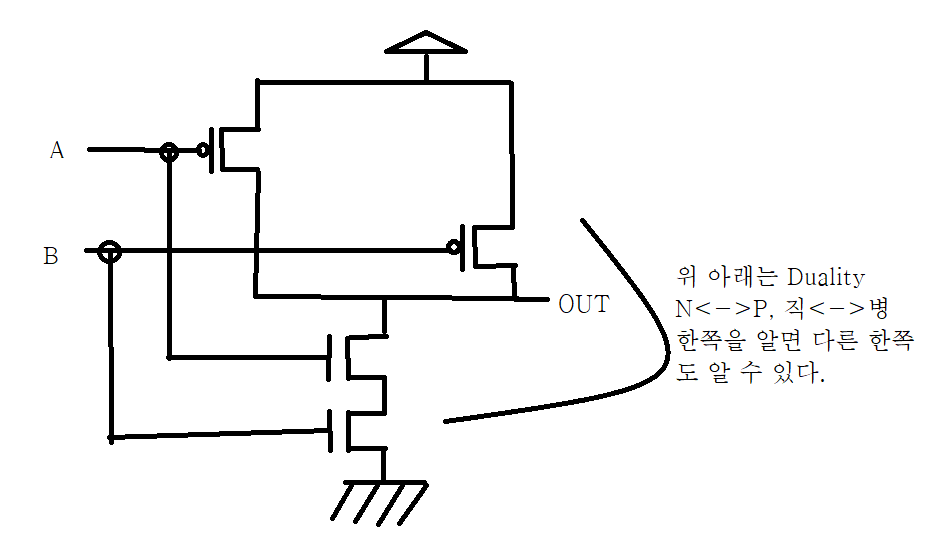 이러한 구조는 양쪽이 연결되면 short 가 나게 된다. ( 전원과 ground 연결)