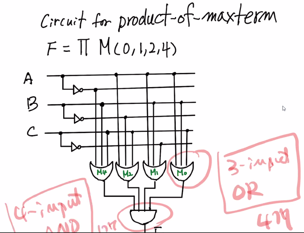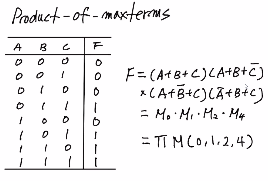 A minterm is a product term in which all inputs appear in its original(F를 0으로 만드는 값에 집중) A form or in its